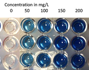 Figure 2. Visual representation of increasing amounts of YAN using the blue pigment.